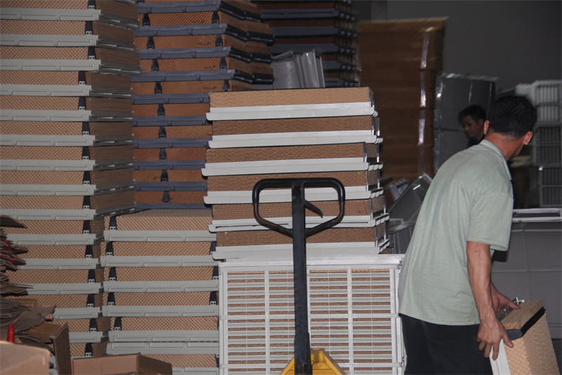 水簾風(fēng)機結(jié)合了負壓風(fēng)機與水簾的雙重功效,通過在負壓風(fēng)機對面安裝水簾,利用負壓風(fēng)機的抽排方式運行,不僅達到降溫增濕的效果,還可與其他設(shè)備如環(huán)保空調(diào)等結(jié)合使用,形成多樣化的降溫方案。水簾風(fēng)機降溫方案成本低廉,安裝簡單,能夠有效地降低室內(nèi)溫度。